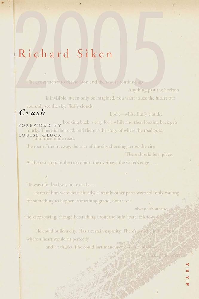 In her introduction to the book, Glück hails the “cumulative, driving, apocalyptic power, [and] purgatorial recklessness” of Siken’s poems. She notes, “Books of this kind dream big. . . . They restore to poetry that sense of crucial moment and crucial utterance which may indeed be the great genius of the form.”