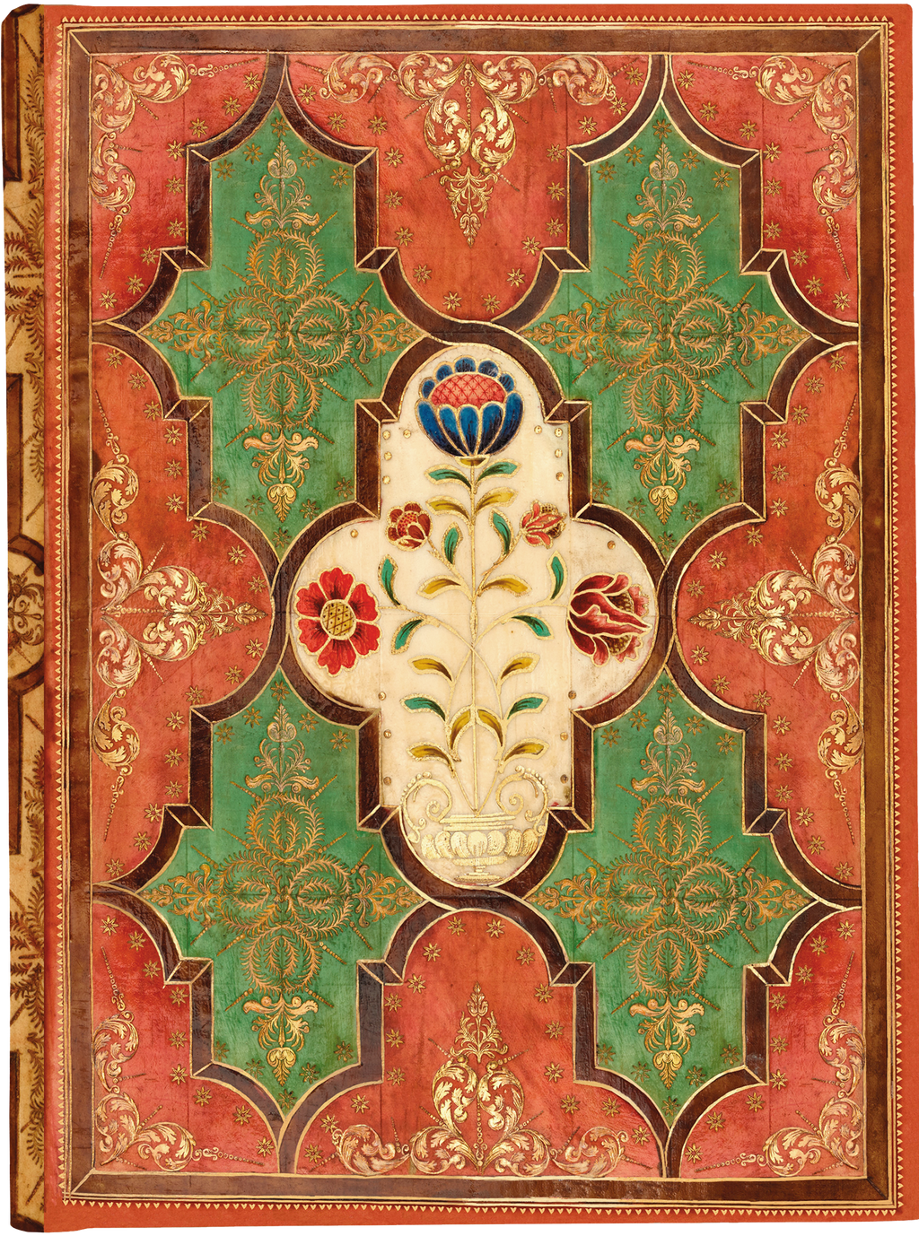 Elegant journal reproduces a tooled book binding inspired by folk art stylings popular in 18th-century Europe. Its crisp writing pages provide plenty of space for personal reflections, sketching, or for recording favorite quotations or poems. Premium 120 gsm paper takes pen or pencil beautifully. Paper is acid-free and of archival quality. Light gray lines subtly guide your writing. A ribbon bookmark keeps your place. Intricate gold foil tracery illuminates the cover design. Raised embossing adds dimensional detailing. Matching spine treatment. Gilded-gold edging catches the light as you turn each page. Complementary interior endsheets enhance the design. Durable hardcover binding. Journal measures 6-1/4'' wide x 8-1/4'' high. 160 pages.