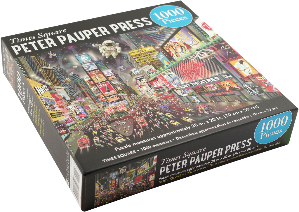 New York City's bustling Times Square -- The Crossroads of the World -- is the subject of this stunning and intricate jigsaw puzzle, sure to satisfy even the most avid puzzler! 1000 precision-cut pieces fit snugly. High-resolution image. Linen-textured surface reduces glare. Durable premium blue puzzle board. Full-sized, full-color poster of finished puzzle included for reference. Hours of fun! Finished puzzle measures 28'' wide x 20'' high. Sturdy puzzle box measures 9-1/4'' square x 2.5'' deep. Warning: Choking hazard, small parts. Not for children under 3 years.